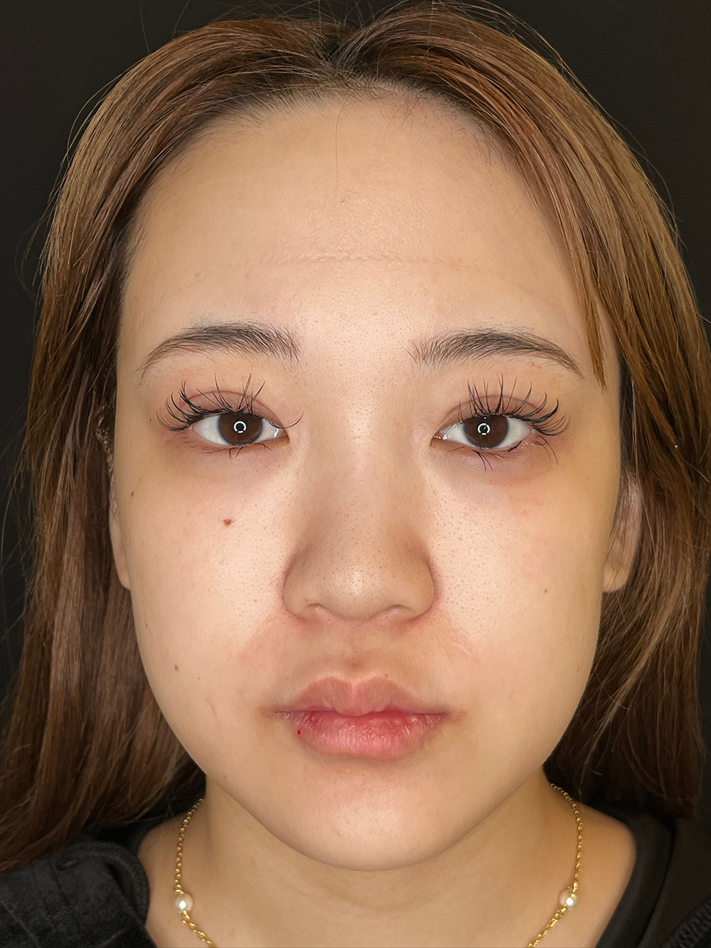 本症例では、「二重埋没3点留め」による施術を行い、自然で取れにくい二重ラインを形成しました。メスを使用せず、医療用の糸でまぶたを留めることで、ナチュラルかつ安定した仕上がりを目指します。