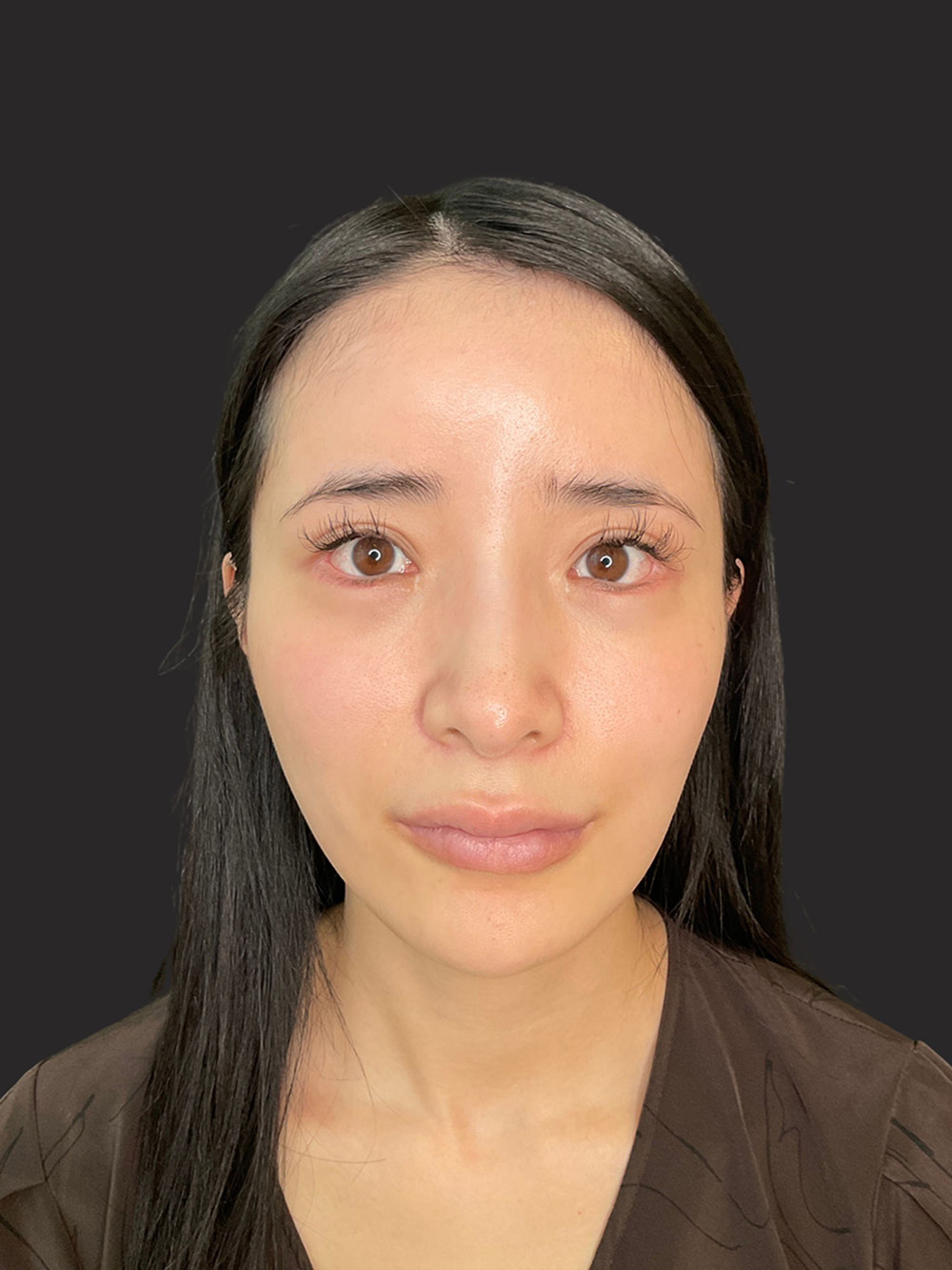 下まぶたにグラマラスライン切開を施し、目元をやさしく下げることで理想的なタレ目を実現した症例です。過度な変化を避けつつ、女性らしい柔らかな印象を引き出すことに重点を置いております。切開法により持続性の高い仕上がりが期待でき、目元全体のバランスも整います。華やかさと上品さを兼ね備えた印象を目指す方に適した施術です。