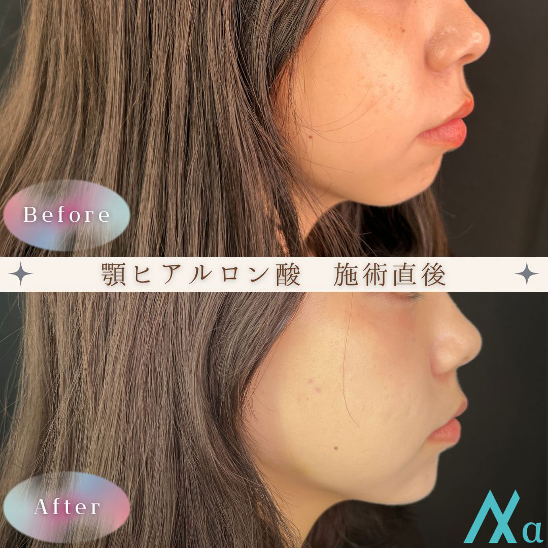 「20代女性」「ヒアルロン酸」「鼻筋・顎」の症例写真(術前/施術直後)