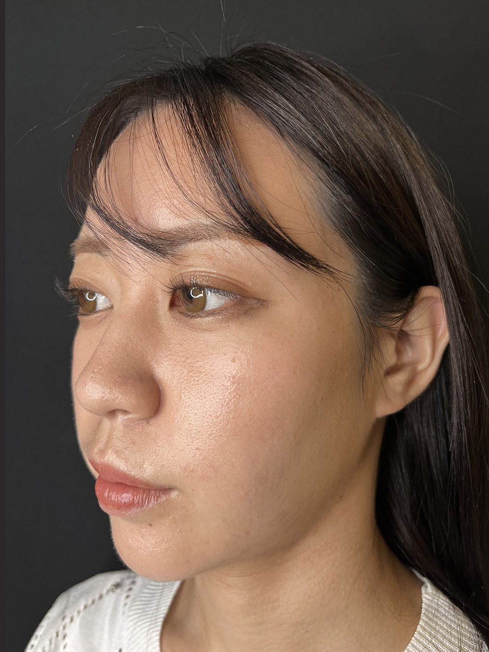 本症例では、ヒアルロン酸注入により涙袋・鼻筋・唇のバランスをトータルでデザインしました。顔全体の立体感を考慮しながら、過度にならないナチュラルなボリューム形成を行っています。