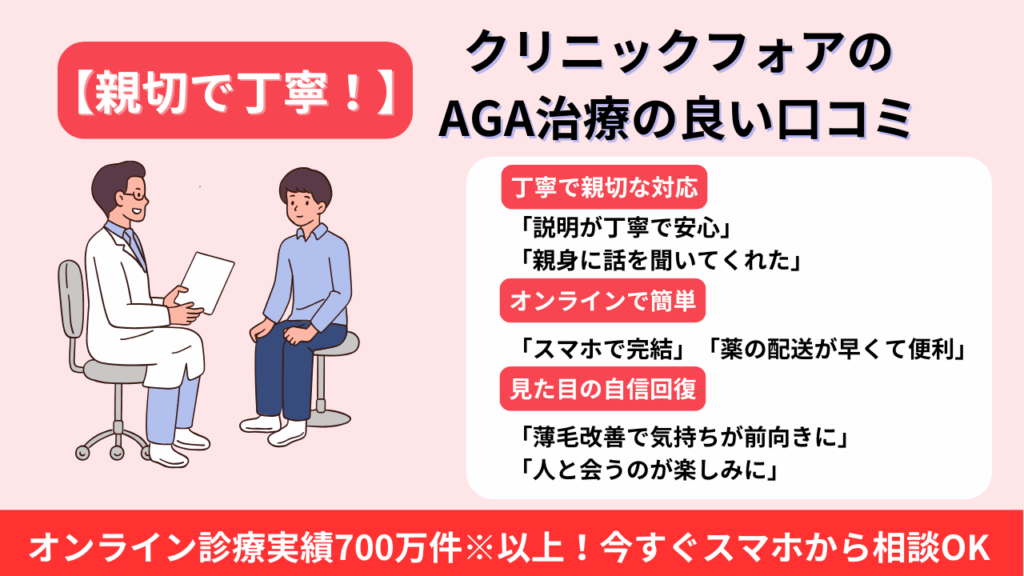 【親切で丁寧!】クリニックフォアのAGA治療の良い口コミ