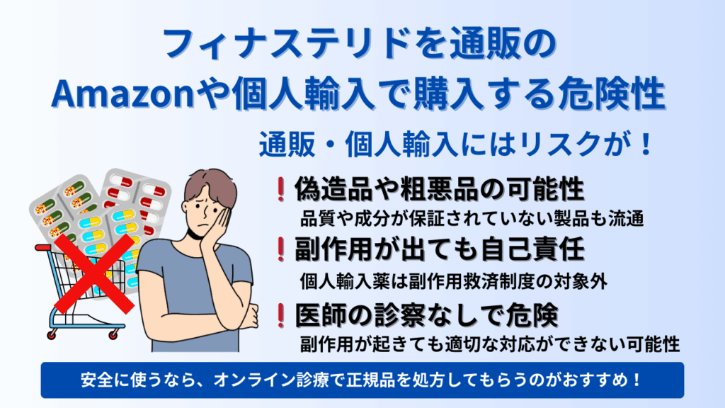 つまり、安全にフィナステリドを手に入れたいなら、オンラインクリニックや病院での正規処方が必須です。